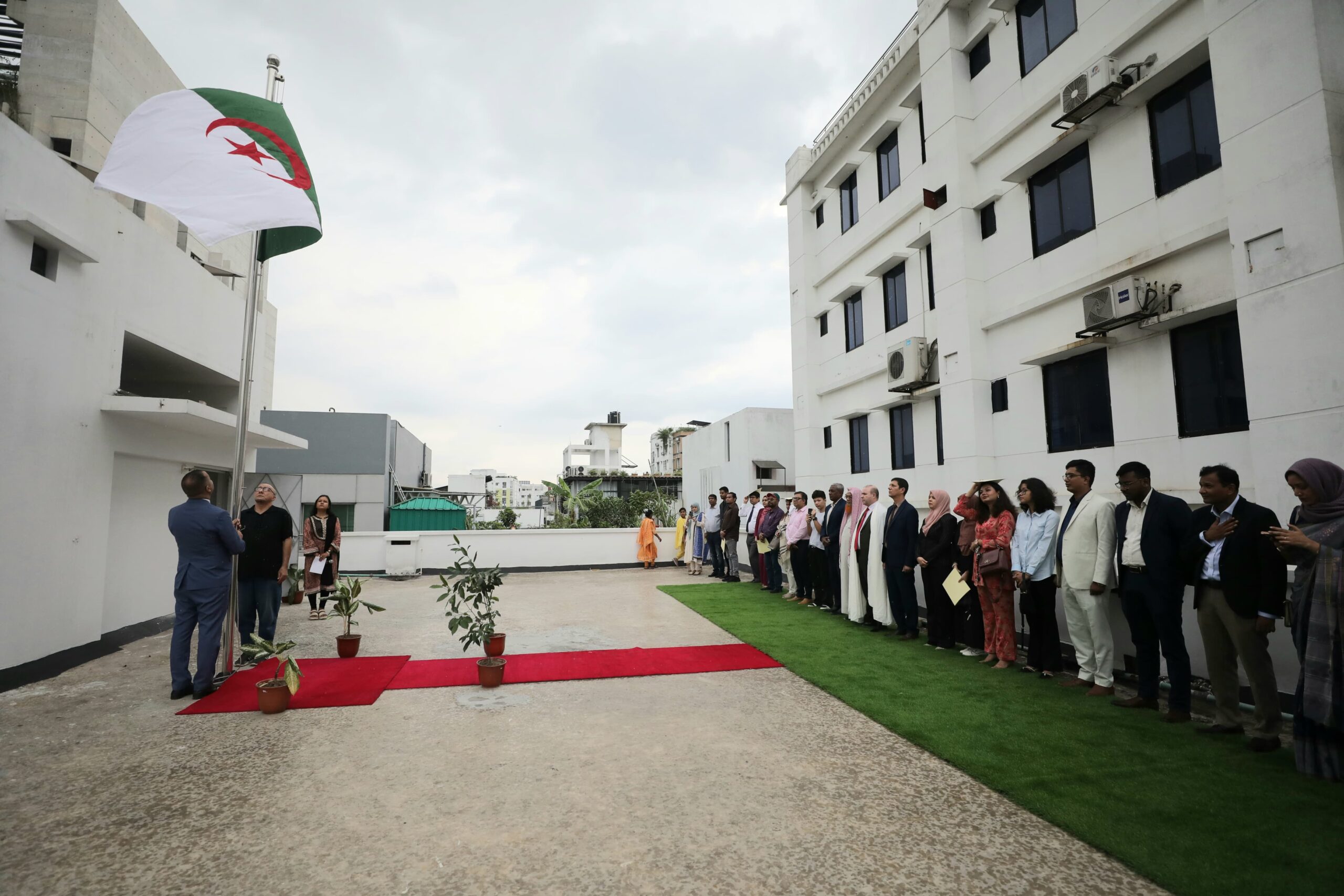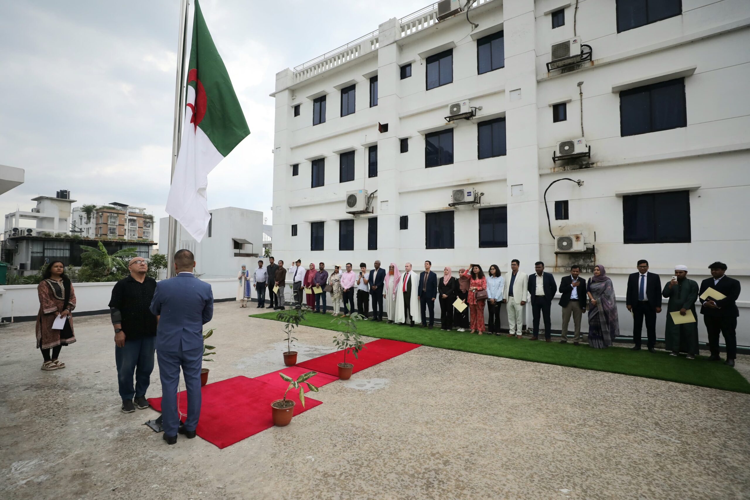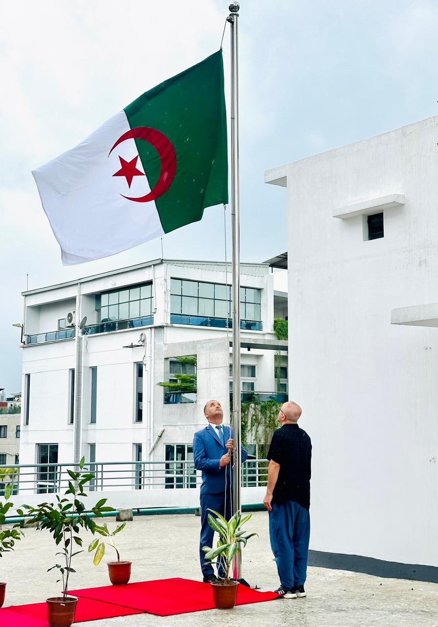 The 69th anniversary of the National Student Day, 19 May 1956 was observed at the premises of the Algerian Embassy in Dhaka this afternoon. The celebration began with hoisting the Algerian flag and National Anthem of Algeria. A minute of silence was observed and special prayer and recitation of Sura Fatiha was conducted in remembrance of the brave martyrs.